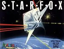 Starfox is a video game published by Ariolasoft on their Reaktor label in 1987 for the ZX Spectrum, Commodore 64, and Amstrad CPC. The player assumes the role of Hawkins, a space fighter pilot charged with protecting the Hyturian star system from invading alien forces. The game uses wireframe and shaded vector graphics to depict combat, in a similar fashion to games such as Elite and Starstrike 2, which were also created by Realtime Games. Ariolasoft had previously published the Electronic Arts titles Skyfox and Arcticfox and the name was chosen to build on the success of those titles. The US Commodore 64 release was titled The Rubicon Alliance.