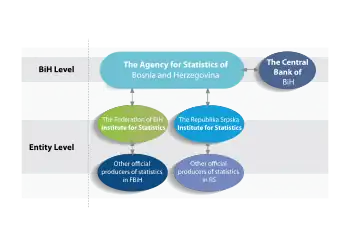 Bosnia and Herzegovina has three governmental statistics offices, each one responsible for a different area of the government.[1] One agency is in charge of whole country statistics (the BHAS), while the other two oversee statistics in BiH's constituent entities, the Republika Srpska and The Federation of Bosnia and Herzegovina. This system reflects strong decentralization in the region, and several independent reports have stated that this impedes an efficiently functioning government body. To this end, the three agencies still do not fully agree on several various statistical concepts and definitions.[2] All three agencies were established in 2004 with the passage of the Law on Statistics of Bosnia and Herzegovina[3]. Also, the Central Bank, though not a statistics agency on its own, is tasked with calculating yearly balances and preparing other financial statistics.[4][5]