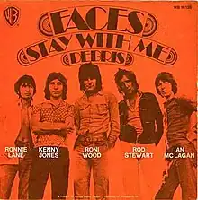 "Stay with Me" is a song by English rock band Faces, written jointly by lead singer Rod Stewart and guitarist Ronnie Wood. Released from the band's third studio album A Nod Is As Good As a Wink... to a Blind Horse (1971), it became their only major hit in the United States, although they had a further three Top 20 singles in the UK chart. The song has also appeared on various Faces compilations and on albums by both songwriters. The lyrics describe a woman named Rita, who has a face that she has "nothing to laugh about", and with whom the singer proposes a one-night stand, on the condition that she be gone when he wakes up.