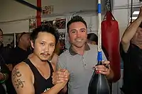 With his extensive background in martial arts and weapons, Ho has been a sought-after instructor and choreographer in Hollywood to stuntmen and actors aiming to get film-ready. Most Notably, Ho trained Brad Pitt in swordplay for six months prior to his production of Troy,[11][12] and prepped Tobey Maguire for 3 months prior to his transformational role as Peter Parker in Spider-Man (2002).[13] His students list includes Leonardo DiCaprio, James Franco, Pierce Brosnan, Pink, Method Man, Rachel Weisz, Gisele Bündchen, Josh Charles, Steve Nguyen, Peter Krause, Bar Refaeli, Lennie James, Ellen Barkin.[3]