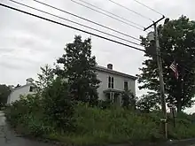 The Steward–Emery House is located on the west side of North Main Street (Maine State Routes 8 and 16), just north of Madison Street and south of the Carrabec Community School, on the northern fringe of North Anson village. it consists of a roughly square main block, connected via ells of decreasing size to a large carriage barn; the entire complex forms an L shape. The main house has a truncated hip roof topped by a low balustrade at the center. The walls are finished in clapboards, with quoined corners. The front facade, facing east, is three bays wide, with a central entrance sheltered by an ornate portico with chamfered posts and elliptical arches. Above the entrance are paired round-arch windows; the remaining bays have sash windows. The south facade of the main block has an enclosed Colonial Revival porch extending across most of hits length. Unfortunately, in 2019 a house fire caused by a space heater took the life of the resident, and left the house in disrepair. It has since been torn down. [2]