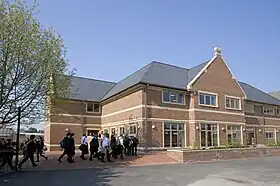 In 2011, planning permission was received to erect a new teaching block on the Woodsmoor side of the site,[4] to replace the Woodsmoor hall and laboratories that were demolished in 2010.[5] The build was completed in June 2012, and the "black and white tower" and classics block were demolished later that year.
