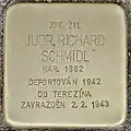 HERE LIVED JUDR. RICHARD SCHMIDL BORN 1882 DEPORTED 1942 TO AUSCHWITZ MURDERED 2.2.1943 |