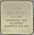 HERE LIVED OLGA ŘÍHOVÁ BORN 1904 DEPORTED 1943 TO AUSCHWITZ MURDERED 12.9.1943 |