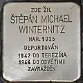 HERE LIVED ŠTĔPÁN MICHAEL WINTERNITZ BORN 1935 DEPORTED 1942 TO THERESIENSTADT 1944 TO AUSCHWITZ MURDERED |