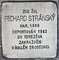 Richard Stránský was born in Mladá Boleslav in 1889. His first name sometimes is also spelled Rickard. He became a merchant and married Marta née Straussová. The couple had a daughter called Margita. On 4 September 1942 he was deported from Prague to Theresienstadt concentration camp with transport Bd, together with his wife and his daughter. On 8 September 1942 the family was deported to Maly Trostenets extermination camp with transport Bk, train Da 226, and all three were killed during the Shoah.