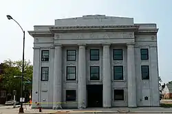 Architect William Gibbons Uffendell designed the bank in the Neoclassical style, by far the most popular for bank buildings at the time. Uffendell's design features a granite exterior, a temple front with four Doric columns, and an entablature topped by a parapet. The bank folded in 1931 as the Great Depression disrupted the city's banking industry; for the remainder of the 20th century, the building was alternately used by other banks and left vacant for extended periods.[2]