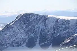 Storstyggesvånåtinden is a mountain in Lesja Municipality in Innlandet county, Norway. The 2,212-metre (7,257 ft) tall mountain lies within Dovrefjell-Sunndalsfjella National Park, about 20 kilometres (12 mi) north of the village of Dombås in the Svånåtindene mountains. The mountain is surrounded by several other mountains including Nordre Svånåtinden which is about 3 kilometres (1.9 mi) to the north, Snøhetta which is about 5 kilometres (3.1 mi) to the northeast, Skredahøin which is 3 kilometres (1.9 mi) to the south, and Mjogsjøhøi and Mjogsjøoksli which are about 7 kilometres (4.3 mi) to the southwest.