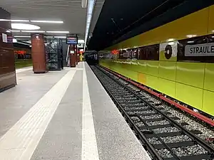 Străulești is a metro station in northern Bucharest, serving Bucharest Metro Line M4. It is the northern terminus of the line. Although it was supposed to be opened on 19 December 2016, as part of Stage III of M4 line, Metrorex decide it to postpone it until the first half of 2017 due to safety issues.[1][2] The station was opened on 31 March 2017 as part of the extension of the line from Parc Bazilescu.[3] It is located near the north-western exit of Bucharest towards Mogoșoaia and includes a new metro depot and a park & ride. Its main purpose is to encourage the people working in Bucharest to park their cars at the entrance of the city and continue their ride with the public transport.
