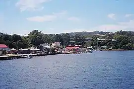 ![]() A view of Strahan, taken from a boat in Macquarie Harbour | |||||||||