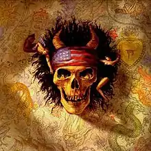 ![]() The cover painting by Aaron Smith is based on a tattoo design by singer/guitarist Joe Wood and technician Shawn Peterson.[1] | ||||