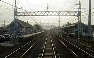 The station has two high-level side platforms, each four cars long, serving the four tracks of the Northeast Corridor.[7]:22 The station has 294 parking spaces, which are all owned by the state.[8]