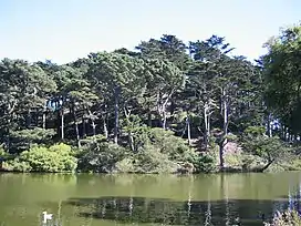 The Golden Gate Pavilion, is a Chinese peace pagoda stands near the shore of the lake presented to San Francisco by its sister city Taipei in 1976.[4]
