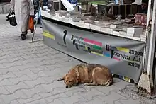 Street dogs (Bulgarian: улични кучета,[1] ˈulichni ˈkucheta) are a notable subpopulation of dogs arising and existing in Bulgaria's capital Sofia since 1990. It overlaps to a large extent the local free-ranging dog population. First publicly available data on street population count showed 11,124 dogs in mid-2007.[2] After a fatal incident in which a prominent person was killed by a pack of strays in Sofia in spring 2012, the City Hall proclaimed plans to reduce the population by 95 per cent by 2016.[3] Following their massive removal from public spaces, in mid-2018, 3,589 dogs reportedly remained outside.