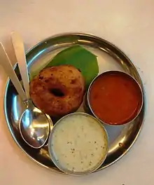 Street food, as in other areas of India, are popular in Chennai,[1] despite the common belief in India that street food is unhealthy.[2] The idly sambhar is a popular dish, which is served as breakfast or dinner. Apart from regular South Indian street food, the city's streets are also filled with several North Indian street food outlets, most of them established by North Indian migrants themselves.[3] Gujarati[3] and Burmese[4] are also available. Street food in Chennai is so popular that a game had developed based on the TV show The Amazing Race where contestants have to follow clues to street-food spots in the city.[5][6]
