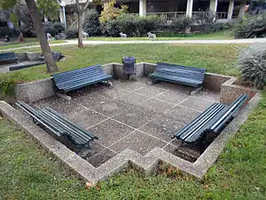 - Benches: these are used for seating and include benches, stools (benches without backs), armchairs, chairs (armchairs without backs), stools and loungers. They can be made of stone, wood, iron or concrete, with models such as Romantic, Neo-Romantic, Neobarcino, Mediterraneo, Catalano, Montseny, Levit, U, Cadira Nigra, Boston, Sumo, Nu, Marina, Diputació, Koro, G, Alpino, Socrates, Hebi, Lungomare, Sillarga, Sicurta or Modular.[31]