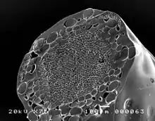 SEM micrograph of a sectioned Multi-filament string