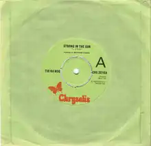 ![]() Original "Strong In The Sun" 45 (UK issue). A second UK press with a different green label exists: the letter "A" is not present on the A-side. | ||||
