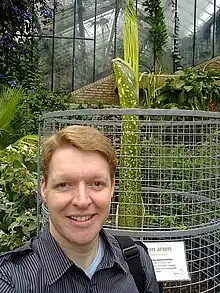 Stuart Meeson also has a very keen interest in horticulture and plant science.[22] He is a member of many UK based horticultural societies and exhibits regularly at their horticultural shows. He was awarded the RHS Banksian Medal at the Dogmersfield, Winchfield and Crookham Village Horticultural Show 2010.[23] After specialising more in flowering orchids in 2011 he was awarded the Ernie Self Novice Trophy[24] at the Orchid Society of Great Britain (OSGB) Autumn Show. Later in 2014 he was awarded the RHS Banksian Medal at the OSGB Spring Show.[25] As a keen grower of terrestrial orchids and Pleurothallidinae the first of five Certificates of Cultural Commendation was awarded for the terrestrial orchid Epipactis gigantea 'Trefor' by the RHS Orchid Committee in June 2015.[26] At the 25th Anniversary Show he was awarded an RHS Gold medal and Best Flower Box at RHS Hampton Court Palace Flower Show 2015, for his exhibit celebrating 800 years of the Magna Carta.[27] Many of his flowering orchids are grown in globes and terrariums to increase the local humidity and promote flowering, and in March 2017 a Certificate of Cultural Commendation for Masdevallia mendozae 'Mullus' growing in a large globe was awarded by the RHS Orchid Committee.[28] At the inaugural RHS Chatsworth Flower Show (2017) he was awarded an RHS Silver Floral medal for a display of orchids for the home and garden in the Floral Marquee.[29][30] After being encouraged to grow Pleione (plant) in large pans or bowls, in April 2018 Stuart was awarded Best Hybrid Orchid at the RHS London Orchid Show for Pleione Tongariro.[31] The Guinness World Record for the most blooms on an orchid plant (sympodial) is 1,684 and was achieved by Stuart Meeson (UK), with his Epipactis gigantea 'Trefor', in Fleet, Hampshire, UK, as verified on 9 June 2018.[32][33] In March 2022 Stuart was awarded Best Hybrid Orchid at the first RHS Wisley Orchid Show for Masdevallia Prince Charming 'Trevor'. Three Haven Hybrid orchids have been registered with the International Cultivar Registration Authority for Orchid Hybrids[34] administered by the Royal Horticultural Society (RHS).