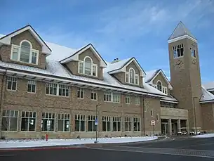 As a university, BYU is extremely supportive of marriage. For example, The Daily Universe—the student run newspaper at BYU—publishes a Bridal Guide each summer.[18] The course selection at BYU reflects an emphasis on marriage. While many universities offer one or two marriage and family classes to their students, BYU offers courses focused on mate selection, marriage preparation, marriage enhancement, marriage therapy, and multiple classes aimed at strengthening the family.[19] On a higher level, the weekly university devotionals and quarterly Church Educational System Firesides (often held at BYU's Marriott Center) often center on the topics of dating and marriage. Members of church leadership such as apostle Richard G. Scott urge young men to "not waste time in idle pursuits, but [to] serve a mission for the Church, then make marriage their highest priority".[20] Overall, students at Brigham Young University are urged often by church leaders and school leaders to wed.
