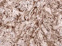 GFAP stained microscopic section of a subependymal giant cell astrocytoma