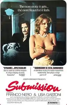 Submission (Italian: Scandalo, aka Scandal) is an Italian film filmed in technicolor and directed by Salvatore Samperi based on his own script written in collaboration with Ottavio Jemma, according to Samperi. It belongs to the drama and erotic genres and had as principal actors Franco Nero, Lisa Gastoni, Raymond Pellegrin and Andréa Ferréol.[1][2]