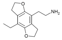 - ↑ Monte AP, Marona-Lewicka D, Parker MA, Wainscott DB, Nelson DL, Nichols DE (July 1996). "Dihydrobenzofuran analogues of hallucinogens. 3. Models of 4-substituted (2,5-dimethoxyphenyl)alkylamine derivatives with rigidified methoxy groups". Journal of Medicinal Chemistry. 39 (15): 2953–61. doi:10.1021/jm960199j. PMID 8709129.
