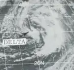 A southwestward-moving cold-core low pressure area developed into a subtropical depression while located about 950 mi (1,530 km) west-southwest of Flores Island in the Azores on November 1.[1] After forming, the system soon strengthened and was upgraded to Subtropical Storm Delta. Early on November 3, Delta attained its peak intensity with maximum sustained winds of 45 mph (72 km/h) and a minimum barometric pressure of 1,001 mbar (29.6 inHg). Around that time, the subtropical storm briefly moved southward, before beginning a general eastward movement on November 4. Delta soon began to weaken and was reduced to a subtropical depression by the following day. It continued eastward until November 6, at which time the storm decelerated and curved northward. Delta dissipated while located about 790 mi (1,270 km) southwest of Flores Island.[5]