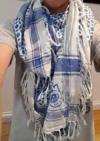 The exact historical origins of wearing a piece of cloth wrapped around one's head are, at the moment, unclear. Some of the earliest examples can be found in artworks from ancient Mesopotamia, like statues of statues of Gudea wearing a turban-like garment.[7] Similar headdresses might have been worn back as early as 2600 BCE. These headdresses are often imbued with great historical, religious, and cultural significance in the Near East.[8] According to the Irish Professor of Biblical Studies John Raymond Bartlett, the Ancient Hebrews also wore pieces of cloth, either fashioned like the kūfīyah, a folded up piece of fabric wound around one's head or like a turban or stocking cap.[9]