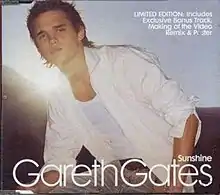 "Sunshine" is the second single released from Pop Idol runner-up Gareth Gates' second studio album, Go Your Own Way (2003). The single was released on 8 September 2003 and peaked at number three on the UK Singles Chart. This was the second single from Gates that failed to reach the top spot. The promotional video was infamously available to vote to enter the MTV2 viewers chart despite the channel being entirely an alternative rock format. It gained under 10 votes and was included to vote on as a joke.