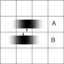 An image is formed using the normal passband of the optical device. Then some known light structure, for example a set of light fringes that need not even be within the passband, is superimposed on the target.[11][9] The image now contains components resulting from the combination of the target and the superimposed light structure, e.g. moiré fringes, and carries information about target detail which simple unstructured illumination does not. The “superresolved” components, however, need disentangling to be revealed. For an example, see structured illumination (figure to left).