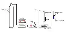 The system must contain a pump for the CO2, a pressure cell to contain the sample, a means of maintaining pressure in the system and a collecting vessel. The liquid is pumped to a heating zone, where it is heated to supercritical conditions. It then passes into the extraction vessel, where it rapidly diffuses into the solid matrix and dissolves the material to be extracted. The dissolved material is swept from the extraction cell into a separator at lower pressure, and the extracted material settles out. The CO2 can then be cooled, re-compressed and recycled, or discharged to atmosphere.