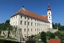 The local landmark is the parish church in the settlement, from which the village gets its name. It is dedicated to the Holy Trinity (Slovene: sveta Trojica) and belongs to the Slovenian province of the Franciscan order (OFM). It is a large Baroque church with three belfries that also appear in the municipality's coat of arms. It was built between 1636 and 1643 and expanded between 1735 and 1740.[6] There is also a Franciscan monastery in the village.[7]