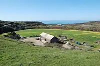 In the 1920s residents realized artichokes and Brussels sprouts grew well in the coastal area. A dam was installed on Scott's Creek and water was transported to the upper terraces for irrigation. What is now rangeland has remnants of reservoirs from this time period. The Poletti and Morelli families became the owners in 1938. The ranch was divided into three phases: a Grade B Dairy, a beef cattle operation and an assortment of row crops. Later John and Bob Musitelli took over beef and cattle and developed a cow-calf operation. As the Muistelli's expanded their operation the Grade B dairy left.[2]