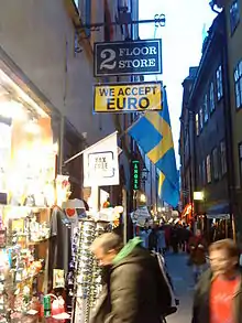 - ↑ Bjällstrand, Richard (3 January 2009). "Delade meningar om euro hos handlare". Helsingborgs Dagblad (in Swedish). Archived from the original on 27 September 2011. Retrieved 1 February 2011.