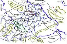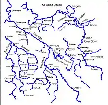 Meanwhile, stationed at Pasua and Elbing (to the far east), Oxenstierna was seeking to move towards the king. The cities that were critical to establishing a land route between the two armies was Kolberg (occupied by the Imperials) and Cammin. Knyphausen and Oxenstierna were entrusted with the task of establishing a land route between Prussia and Swedish occupied Pomerania.[61] Meanwhile, being August as it was, the king was contemplating the establishment of winter quarters.[61] However, the Administrator of Magdeburg, Christian William declared in favor of the Swedish, drove out the Imperial garrison and called the Swedes to aid the city. This was done without the king's prior knowledge, and there were many objects which the king deemed to be of higher importance than the city of Magdeburg. It is not likely the king would have encouraged such a move if he had been consulted about it. The king still wanted to march to the Elbe,[61] take possession of the duchy of Mecklenburg and engage in negotiations with Hamburg and Lübeck. Magdeburg was much too far away, and there were large contingents of Imperial troops between the Swedish army and Magdeburg. However, the king sent a colonel, Dietrich von Falkenberg, to the city and ordered him to bring the city into the highest level of defense for an anticipated siege by the Imperials.[62]