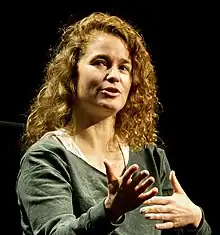 Caledonia Curry (born 1977), whose work appears under the name Swoon, is an American contemporary artist who works with printmaking, sculpture, and stop-motion animation to create immersive installations, community-based projects and public artworks. She is best known as one of the first women Street Artists to gain international recognition.[2][3] Her work centers the transformative capacity of art as a catalyst for healing within communities experiencing crisis.