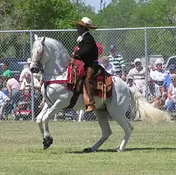 The current national flag was changed from a front-facing to a side-facing position.[1] The current flag is a vertical tricolor of green, white, and red with the national coat of arms charged in the center of the white stripe. While the meaning of the colors has changed over time, these three colors were adopted by Mexico following independence from Spain during the country's War of Independence.
