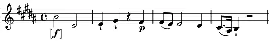 The key of B major, which is highly unusual in the Classical period,[2] sets the tone of the work, which is one of unease, restlessness and searching. The high-pitched horns add a touch of eeriness.[3]