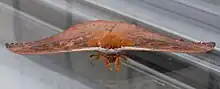 The wingspan is about 120–140 mm (4.7–5.5 in) and variable in color from yellowish to brown or purplish-grey. The wings have zigzag markings, sometimes with dark splotches, and a small circular spot on each wing.[1] The larvae are large greenish spiny caterpillars that feed on various plants, including Euodia elleryana, Geijera salicifolia, Glochidion ferdinandi, Petalostigma quadriloculare, Aegiceras, Ceriops, Timonius rumphii and Podocarpus spinulosus.