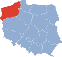 The Szczecin Voivodeship[lower-alpha 1] was a voivodeship (province) with capital in Szczecin, that was centered on the Farther Pomerania. It existed from 1946 to 1975.[1][2] Until 19 February 1947 it was under the administration of Provisional Government of National Unity, which then was replaced by the Polish People's Republic.[3] It was established on 28 June 1946, when it was formed from the territory of the District of the Western Pomerania, and parts of the Gdańsk, and Pomeranian Voivodeships.[1] On 6 July 1950, its eastern half was incorporated into then-established Koszalin Voivodeship,[4] and the voivodeship ceased to exist on 31 May 1975, when it was replaced by then-established Szczecin and Gorzów Voivodeships.[2]