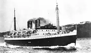 Ordered in 1930, TEV Rangatira was designed with accommodation for up to 720 first class and 236 second class passengers. Her power plant consisted of six water-tube boilers generating energy for two synchronous electric motors making 13,800 shaft horsepower (10,300 kW); these directly powering twin screws. She had a length of 419 feet (128 m) and a width of 58 feet (18 m).[2][3] Each cabin was provided with a hand basin containing hot and cold running water, and every berth had a reading lamp.[4] For increased maneuverability, the ship was designed with a bow rudder to complement her main rudder.