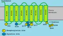 TMEM241 is composed of 9 transmembrane domains forming a hydrophobic integral component of the membrane[2] composed primarily of alpha helices.[6][7][8] TMEM241 contains a VRG4 (Vanadate Resistant Glycosylation[9]) domain with homology to the sugar transporter domain VRG4 from Saccharomyces cerevisiae (yeast).[10]