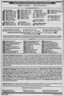 From the magazine's incorporation of cable-originated channels in its local editions in 1982 until 1984/85, nationally distributed basic cable channels (such as ESPN, Nickelodeon, Lifetime and CNN) were typically separated from out-of-market stations distributed to area cable providers in the channel lineup page, under the heading "Satellite Program Services," while premium channels (like HBO and Showtime) were categorized as "Pay-TV Services"; all cable channels listed in each edition were listed in alphabetical order thereafter, with premium services only being categorized separately from other cable channels in the prime time grids. Notations were also included in some editions, starting with the September 14–20, 1985 "Fall Preview" issue, to outline programming offered on certain local stations not listed in that edition. In some editions, particularly the "Ultimate Cable" and satellite editions, the channel lineup was diagrammed in the form of a conversion chart that listed each channel's assigned placement on cable and satellite providers as well as their VCR Plus+ code number; the lineup pages in some of the local editions switched to these charts beginning in 2003, listing channel slots for major cable providers within the local edition's home market (or in more regionalized editions, the largest markets served by that edition). The channel lineup page was dropped in June 2004 in most local editions.