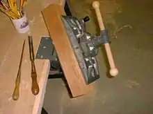 A woodworking vise is a type of vise adapted to the various needs of woodworkers and woodworking. Several types have evolved to meet differing primary functions, falling under the general categories of front and end vises, reflecting their positions on a workbench.