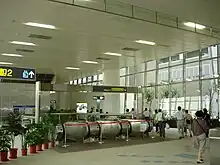 Taipei Nangang Exhibition Center (Chinese: 南港展覽館; pinyin: Nángǎng Zhǎnlǎnguǎn) is a metro station in Taipei, Taiwan served by Taipei Metro.[3] It is a terminal station on both Wenhu line and Bannan line,[4] and serves the Nangang, Neihu, and Xizhi districts.[5]