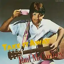 "Take It Away" is a single by the English musician Paul McCartney from his third solo studio album Tug of War (1982). The single spent sixteen weeks on the Billboard Hot 100 singles chart, reaching #10 and spending five consecutive weeks at that position.[2][3] It reached #15 in the UK.[4] The music video, directed by John Makenzie, features former Beatles drummer Ringo Starr and long-time producer George Martin, both of whom played on the track, as well as actor John Hurt and Linda McCartney.[5]