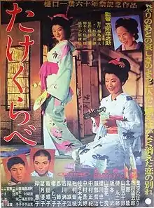 Takekurabe (たけくらべ, Takekurabe, lit. "Comparing heights"), English titles Growing Up, Adolescence, or Daughters of Yoshiwara, is a 1955 Japanese drama film directed by Heinosuke Gosho. It is based on Higuchi Ichiyō's 1895-1896 novella Takekurabe.[1][2]