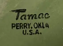 Tamac Pottery was a line of mid-century modern ceramic glazed dinnerware that was manufactured in Perry Oklahoma from 1946 to 1972. The stream-lined biomorphic pottery line included tableware and housewares.