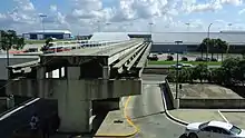 An automated monorail system also once connected the main terminal on Level 5 to the long-term parking garage,[19] stopping at each elevator bank in both buildings. It was installed in 1991 when the long-term parking garage was built.[10] It used six Bombardier UM III vehicles, which are also used on the Jacksonville Skyway.[1]